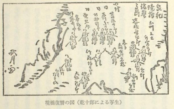 そしてついに国境の橋の上で役人は三郎の縄をとくと、そのまま背中を押すようにして文字通り紀州より追い出した。三郎は手首に巻かれていた縄の跡をなでるようにしながら、集まった見物客の中を通りぬけていこうとしたその時だった。